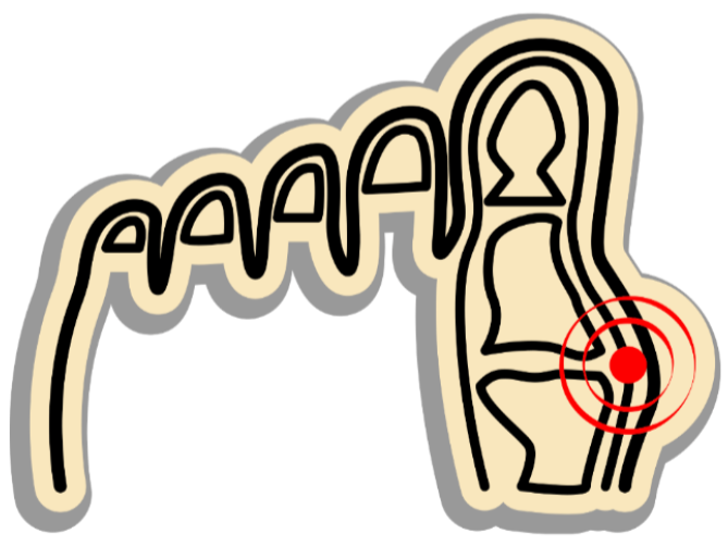 Ko glava členka tako močno štrli ven, da se drgne ob čevlje to povzroča oteklino, rdečino in skoraj gotovo tudi bolečino.